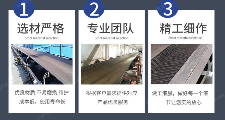 3. 選擇適當的傳送帶類型:根據物料特性和工作環境選擇適當的傳送帶類型,如普通輸送帶、耐磨輸送帶、耐高溫輸送帶等。